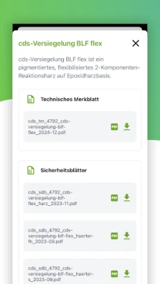 Here you will find : Technical data sheets and system data sheets for detailed product information. Application videos that show you step by step how to use our products correctly, and useful forms. Use the app to access our online store or connect with your specialist advisor. The cds-App is your ideal digital companion for quick access on the construction site or in the office. Of course, our tried-and-tested mixing and roughness depth calculators are still part of the new app in a modified form.