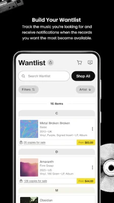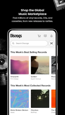 • Utilize Discogs Marketplace price-range and sales history for vinyl, CD and cassette at your fingertips.