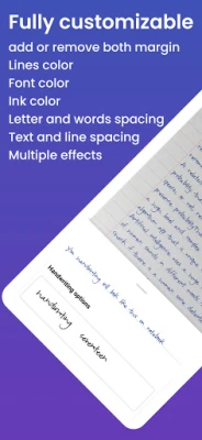 Handwriter is an app that reduces the human effort by simply converting a text copied from the internet, messages, Ebook, doc pdf, websites to a handwritten page or you can say that it converts text to handwriting with full customization possible.