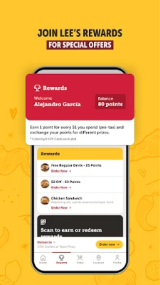 Welcome to the Lee’s Famous Recipe® Chicken app - your new home for famous rewards, exclusive discounts, the latest news and much more! Come on in and see how rewarding eating homestyle can be!